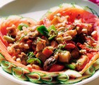 200 г куриного филе, 1 перец сладкий (красный), 400 г пекинской капусты, 3 ст.л. растительного масла, 1 ч.л. карри, 2 ч.л. винного уксуса, петрушка свежая, перец черный молотый, соль - по вкусу.