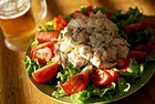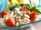 150 г куриного филе, 150 г свежих грибов, 150 г сельдерея, 2 помидора, 1 маринованный огурец, 50 г твердого сыра, майонез, соль.