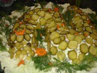 1 тушка цыпленка (800 г), 1 стакан майонеза, 2 яйца, 1/2 лимона, 2 маринованных огурца, 1 ч. л. горчицы, соль - по вкусу.