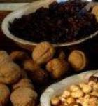 1 пачка крабовых палочек (200 г), 200 г тертого твердого сыра, 2 вареных яйца, 1 ст. чернослива без косточек, 100 г охлажденного сливочного масла, молотые грецкие орехи, майонез.