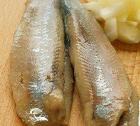 200 г морской капусты, 2 луковицы, 3 вареных яйца, 120 г крабовых палочек, 200-300 г филе копченой скумбрии.