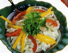 Витлуф - 300 г, рис отварной - 200 г, крабы консервированные или креветки - 100 г, майонез - 100 г.
