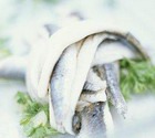 Картофель, лук, соленая сельдь, зелень петрушки, растительное масло, уксус, горчица.