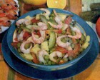 Креветки свежемороженые (очищенные от панциря) - 250-260 г, картофель отварной - 150 г, помидоры свежие - 150 г.