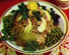 На 4 порции: рыбный фарш - 200 г, отварной рис - 2 стакана, зеленый горошек - 1/2 стакана.
