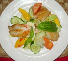 Горячий салат из форели (лосося) со сметанной заправкой