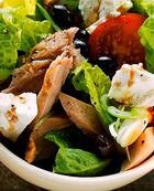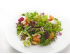 листья салата, 250 г креветок, 200 г клубники, 1 ч.л. икры (красной или черной), 2 ст.л. соевого майонеза.