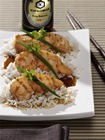 4 ломтика филе семги, 6 ст.л. соевого соуса Kikkoman, 2 ст.л. кунжутного масла, сок и цедра 1 лимона, маленький кусочек свежего имбиря.