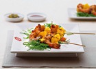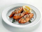 16 замороженных королевских креветок, 1 банка консервированных ананасов-колец, 8 ст.л. соуса-маринада Teriyaki Kikkoman, несколько стрелок зеленого лука, 1 раздавленный зубчик чеснока, 1 ч.л. натертой цедры лимона, 1/2 ч.л. сахара.