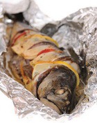 Форель, фаршированная луком-пореем