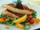600 г свежей рыбы, 3 ст.л. пшеничной муки, перец черный молотый и соль по вкусу, 3-4 луковицы, 1 лимон, 50 г маргарина, 650 г сметанного соуса, 50 г тертого сыра, 30 г сливочного масла.
