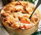 600 г свежей рыбы, 750 г вареного картофеля, 650 г сметанного соуса, 50 г тертого сыра, перец черный молотый и соль по вкусу, 50 г маргарина, 30 г сливочного масла, зелень петрушки.