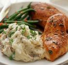 Картофельное пюре из 5-6 картофелин, 200 г рыбных консервов, 1 луковица (или небольшой пучок зеленого лука).