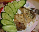 1 кг свежей рыбы, 0,5 кг лука, растительное масло, 3 ст. ложки муки, соль, перец.