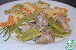 Получается очень вкусное, нежное, тушёное мяско с зелёной фасолью. Приготовить можно заранее к приходу гостей. Перед приходом поставить жаровню на плиту, добавить сметанку, 10 мин. и готово. Очень вкусненько!