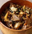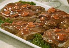 750 г мяса говядины, 100 мл воды, 1-2 луковицы, 1 ст.л. муки пшеничной, 25 г свиного жира.