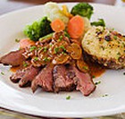 2 кг филе говядины, 4 зуб. чеснока, специи для мяса, 1 крупная морковь, 100 г сыра твердых сортов, 1-2 ст.л. горчицы, 50 г сливочного масла, 2 ст.л. майонеза, зелень, соль и перец по вкусу.