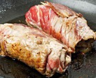 4 куска говяжьей вырезки (по 100 г), 25 г муки, 2 ст.л. растительного масла, 2 луковицы, 150 г красного вина, 1 ст.л. томатной пасты.