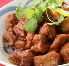 700 г свинины, 1 луковица, 75 г арахиса, 450 мл сидра, 1 ст.л. муки, 2 ст.л. молотой паприки, 1 ч.л. горчичного порошка, 2 ст.л. арахисового масла, 1 яблоко, 1 жгучий перец, 3 ст.л. натурального йогурта, соль, перец.
