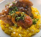 свинина - 1 кг, лук - 2 шт., рис - 1 стакан, сладкий перец - 2 стручка, сметана - 0,5 стакана, жир - 2 ст.л., помидоры - 3-5 шт.