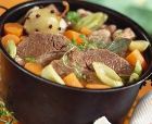 600 г говядины, 3-4 шт. моркови и корня петрушки, 2 ст. л. жира, 1/2 ст. сметаны, 1 ч. л. муки.
