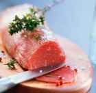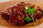 500 г говяжьей или телячьей вырезки, долька чеснока, 0,5 стакан растительного масла, 40 г майонеза, 3 ст. ложки меда, 1 ст. ложка горчичного порошка.