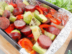 Вот и наступила пора пикников! Хочу поделиться с вами очень вкусным блюдом, которое неизменно пользуется успехом среди моих гостей. Мне очень нравится оно тем, что времени на приготовление требует минимум, а результат восхитительный. Овощи запекаются в собственном соку и насыщаются ароматами чеснока, копчёной колбасы и вашими любимыми приправами. Готовить можно не только в барбекю, но и в духовке. Угощайтесь!