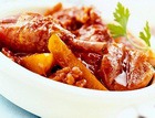 1 тушка индейки, 150 г сухого белого вина, 4 ст.л. топленого жира, 1 луковица, 20 шт. свежих абрикосов, соль, перец, сахарная пудра, корица.