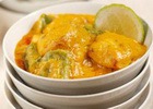 4 куриные грудки, 150 г сметаны, 250 г натурального йогурта, 1/2 ч.л. молотого имбиря, 1 ч.л. молотой корицы, щепотка гвоздики, щепотка кардамона, 2 зуб. чеснока, 1/2 ч.л. соли, 100 г молотого миндаля, 2 ст.л. масла сливочного, 1 ч.л. меда.