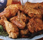 1 курица, порезанная на куски, соль, перец - по вкусу, несколько долек чеснока, 2 стакана воды, 2 яйца, 1 стакан хлебных крошек или сухарей, подсолнечное масло.