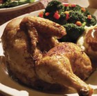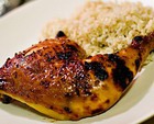 1 тушка курицы, 2 ст. л. 6% уксуса, 150 г воды, соль, перец, 1/2 апельсина, 2 ч. л. сахара, 2 ч. л. меда.
