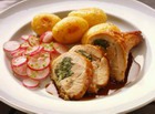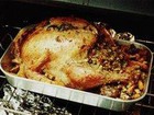 Индейка, 75 г сливочного масла, 1 лимон, 50 г копченого шпика, репчатый лук, 100 г миндаля, 100 г изюма, 80 г яблок.