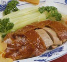 1 утка, 300 г ячменной патоки, 5 ст. л. соевого соуса, зеленый лук.
