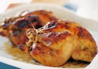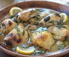 Цыплята, помидоры, масло сливочное, лук репчатый, сок лимона - 1-2 ст.л., лавровый лист, перец горошком, зелень, соль.