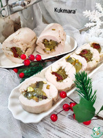 В преддверии новогодних праздничных дней хочу поделиться рецептом вареного рулета из куриного филе. Этот рулет получается нежным и сочным, совершенно не сухим. Предлагаю две ярких по вкусу начинки - "зелёный соус песто с вялеными томатами" и "кисло-сладкий киви с фисташками". Хотя, готовится эта закуска о-о-очень просто, я уверена, она, непременно, украсит ваш праздничный стол. Попробуйте приготовить - это вкусно!