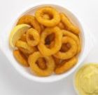 3 яйца, 1 луковица, 3/4 стакана муки, 1/4 стакана молока (воды), соль, перец, специи "Для рыбы" - по вкусу, тушки кальмаров.