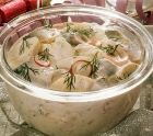 2 крупные сельди, 1 картофелина, 1 морковь, 1 свекла, 1 луковица, 1 соленый огурец, 1 яйцо, по 1 ст. л. растительного масла и уксуса.