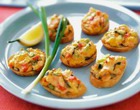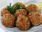 300 г креветок (очищенные), 3 ст. ложки семян кунжута, 1 шт. яичный белок, 1 ч. ложка вина (сухое белое).