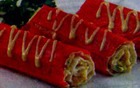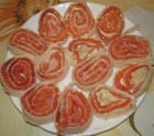 2 тонких лаваша, 50 г масла, 120 г тонких ломтика соленой семги (форели, кеты), 3 яйца, 1 банка рыбных консервов (горбуша), 1 луковица, 1 ст. ложка майонеза.
