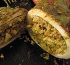 1 кг картофеля, 400 г консервированного тунца, 2 перца чили, 1 небольшой корень имбиря, сок 1 лимона, панировочные сухари, 3 яйца, немного муки, сливочное и растительное масло, зелень кинзы.