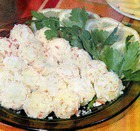 2 плавленых сырка, 2 зубчика чеснока, ядра грецких орехов, 1/2 упаковки крабовых палочек, майонез.