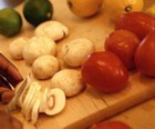 2 помидора, 100 г свежих грибов, 1 яйцо, сыр, сливочное масло, свежая зелень.