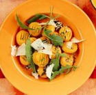 Тыкву очистить, нарезать тонкими ломтиками, слегка обжарить на масле.
