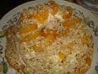 100 г сухофруктов, горсть фисташек, 400 г песочного печенья, 25 г желатина, 1 ст. кипяченой воды, 0,5 л сметаны, 1 ст. сахара.