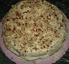 Для теста: 2 стакана муки, 150 г сахара, 100 г толченых орехов, 2 яйца, 0,5 ч. ложки соды, гашенной лимонным соком.
