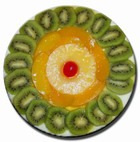 Упаковка бисквитных коржей, сливки 33% жирности, 3 ст.л. сахара, фрукты.