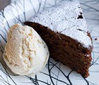 6 яиц, 500 г молочного шоколада, 2 ст.л. кофейного ликера, 250 г взбитых сливок, 100-150 г молотого миндаля, сахарная пудра, масло.
