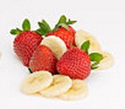 500 г клубники, 1-2 банана, 10-12 шт. грецких орехов (очищенных), 250 мл коньяка, 250 г сахара, 1 щепотка молотого имбиря.