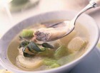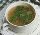 Куриное мясо (можно на косточке) - 200 г, морковь - 2-3 колечка, лук репчатый - 1/2 головки, вода - 700 г, соль - по вкусу, перец душистый - 1-2 горошины, гвоздика - 1-2 бутончика, лавровый - 1 шт.