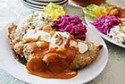 1 кг свежих или свежемороженых кальмаров, 2 репчатые луковицы, 1,5-2 стакана панировочных сухарей, растительное масло, соль и черный молотый перец по вкусу.
